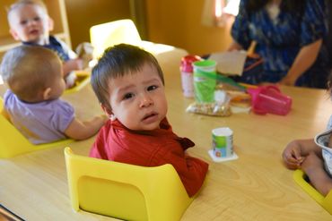 Infants should experience a wide variety of environments, as the brain and physical development rapidly progresses. Our wonderful, cozy, and warm environment is designed for mobility and to foster growth. In our infant classroom, the babies are provided with rich sensory materials and a calm but stimulating environment. Teachers observe when infants are ready for new experiences and provide them as developmentally appropriate.