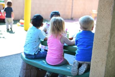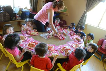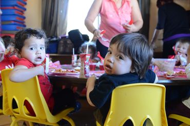 Our toddler program is designed for non-potty trained children. Our staff ratio is one teacher for every six toddlers.
